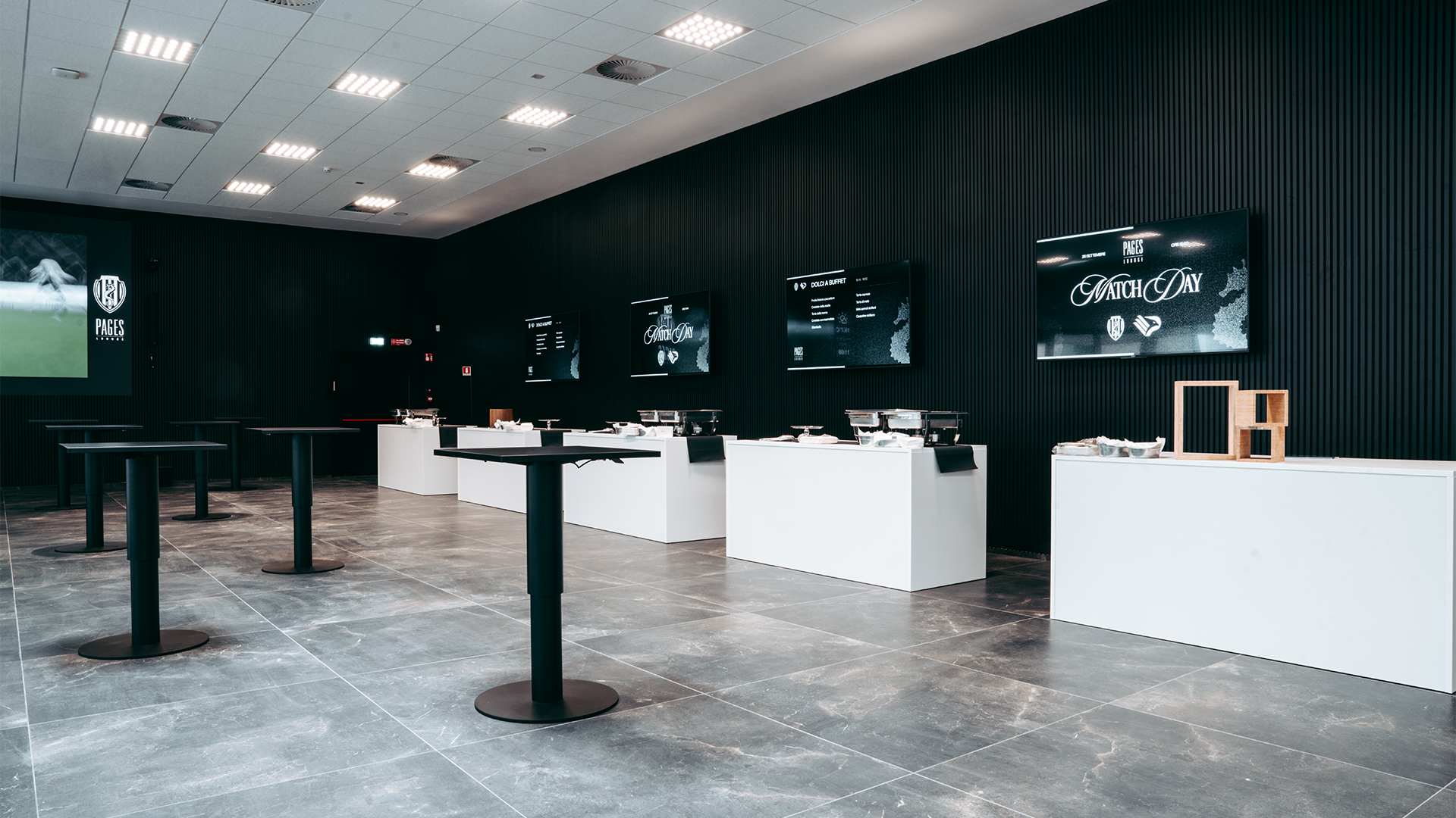 All'interno della Pages Lounge il LEDwall rappresenta l'elemento visivo centrale dello spazio, pensato per accompagnare i momenti chiave dell'esperienza hospitality: visione della partita, replay, presentazioni, eventi e contenuti multimediali.