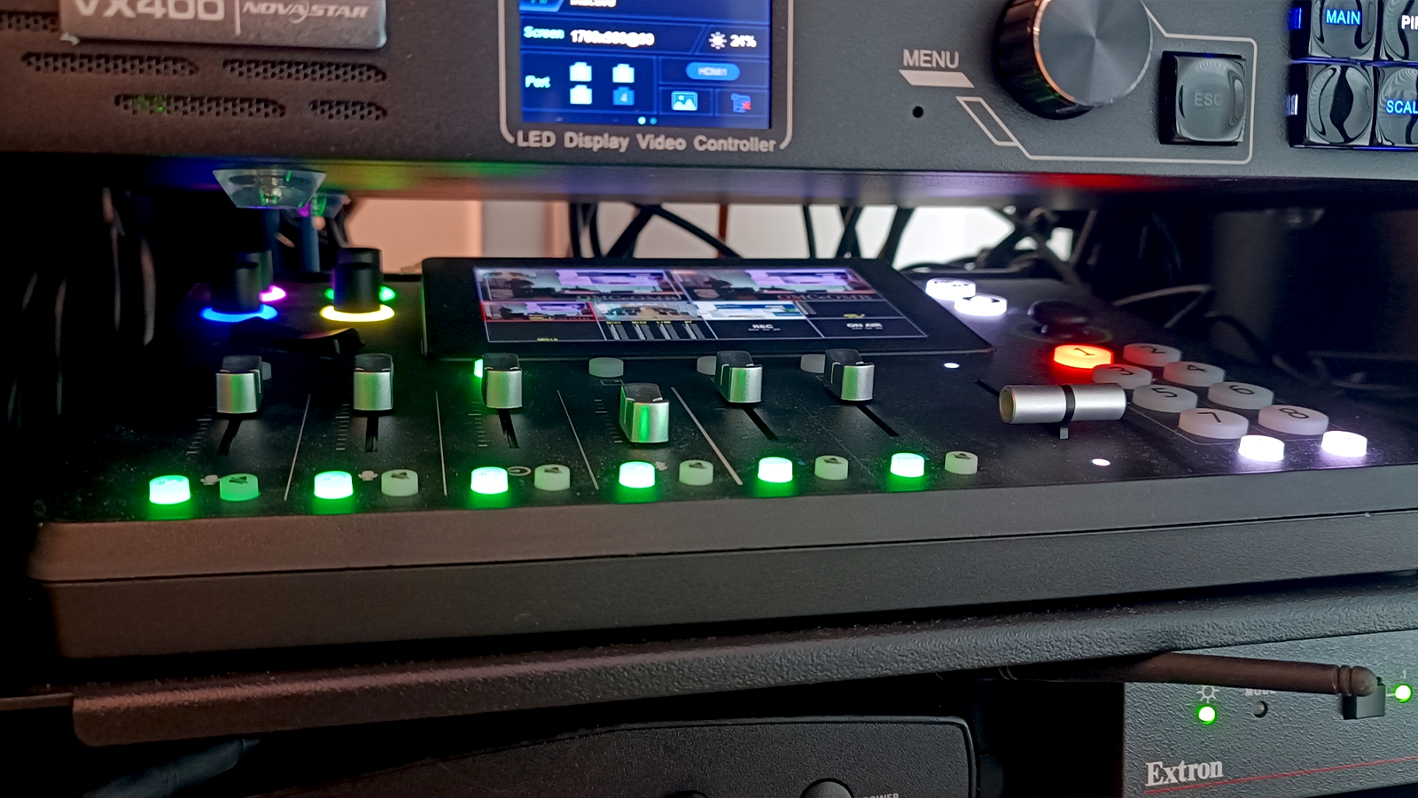 L’intero sistema lavora in sinergia con le sopracitate matrici video Extron e il mixer RGBlink MINI-MX, consentendo la gestione coordinata delle sorgenti visive e sonore in modo intuitivo, con possibilità di streaming immediato o registrazione degli eventi.