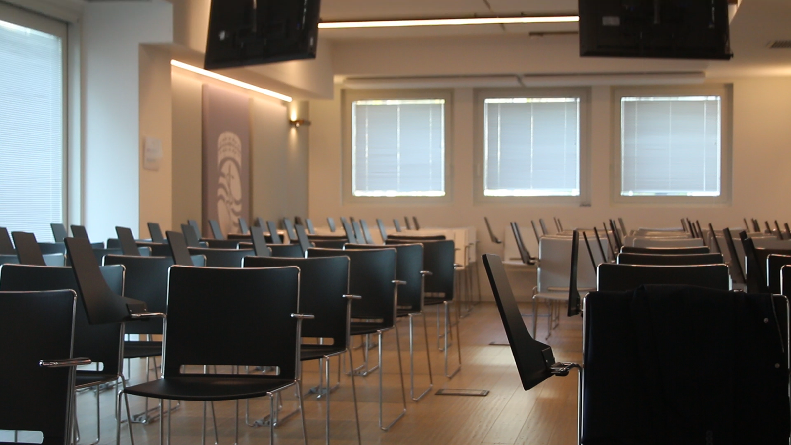 Il sistema audio-video della sala convegni è stato progettato per garantire versatilità e qualità durante eventi, corsi e conferenze in presenza o in streaming.