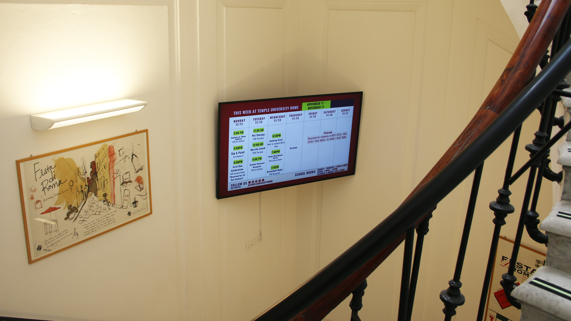 Questa location unica e magica rende la sede capitolina di Temple University un centro accademico all'avanguardia, già dotato di tecnologie moderne, e che oggi ancora di più offre agli studenti americani l'opportunità di vivere immersi nella cultura, nell'arte e nella storia della città.