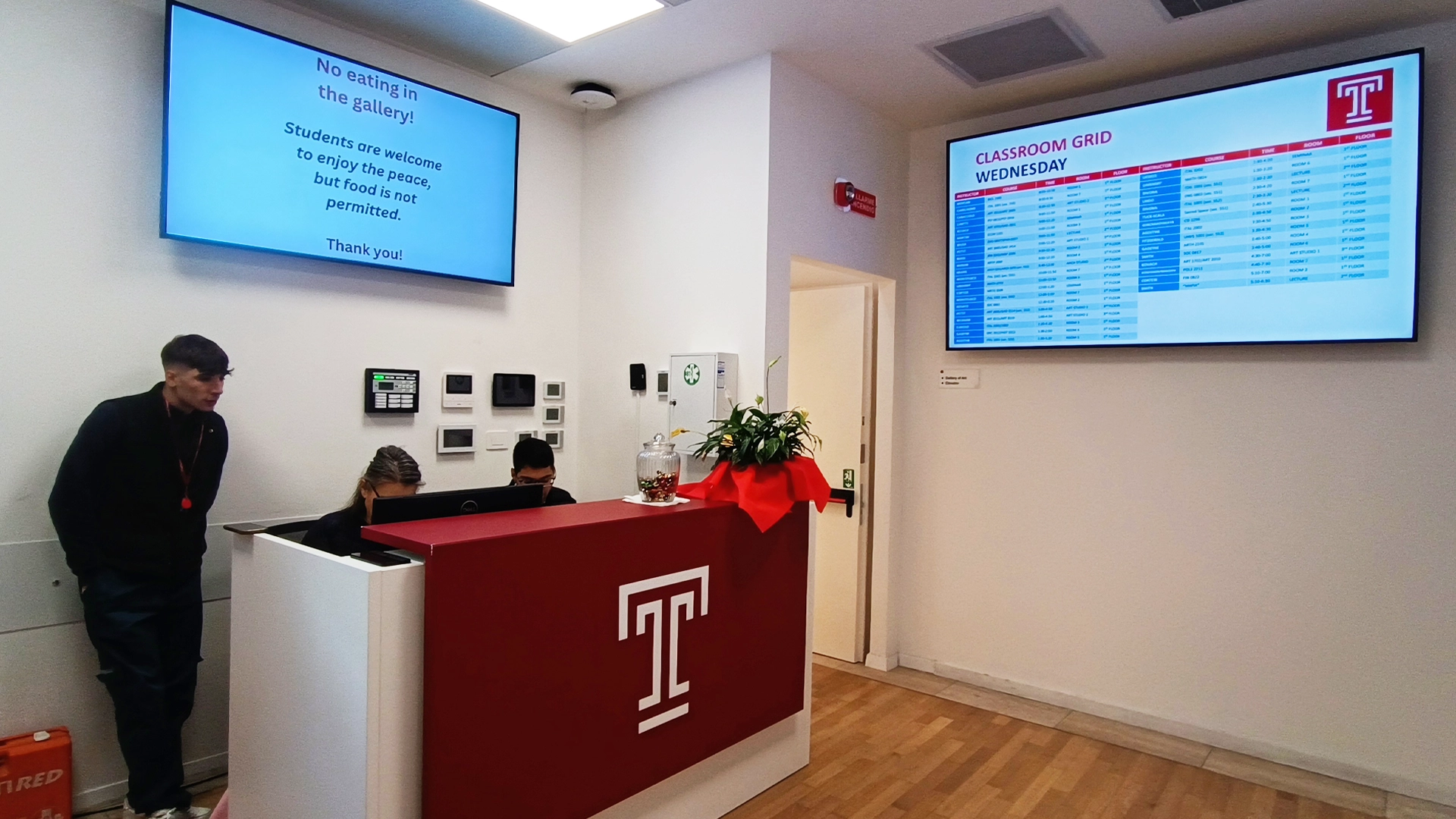 Come già avevamo visto l'anno scorso, le aule della sede capitolina di Temple University sono dotate di tecnologia avanzate e di stampo professionale, come radiomicrofoni, telecamere PTZ KY-PZ200NBE e display interattivi YL6 di StarBoard, presenti in tutte le classi dell'edificio.