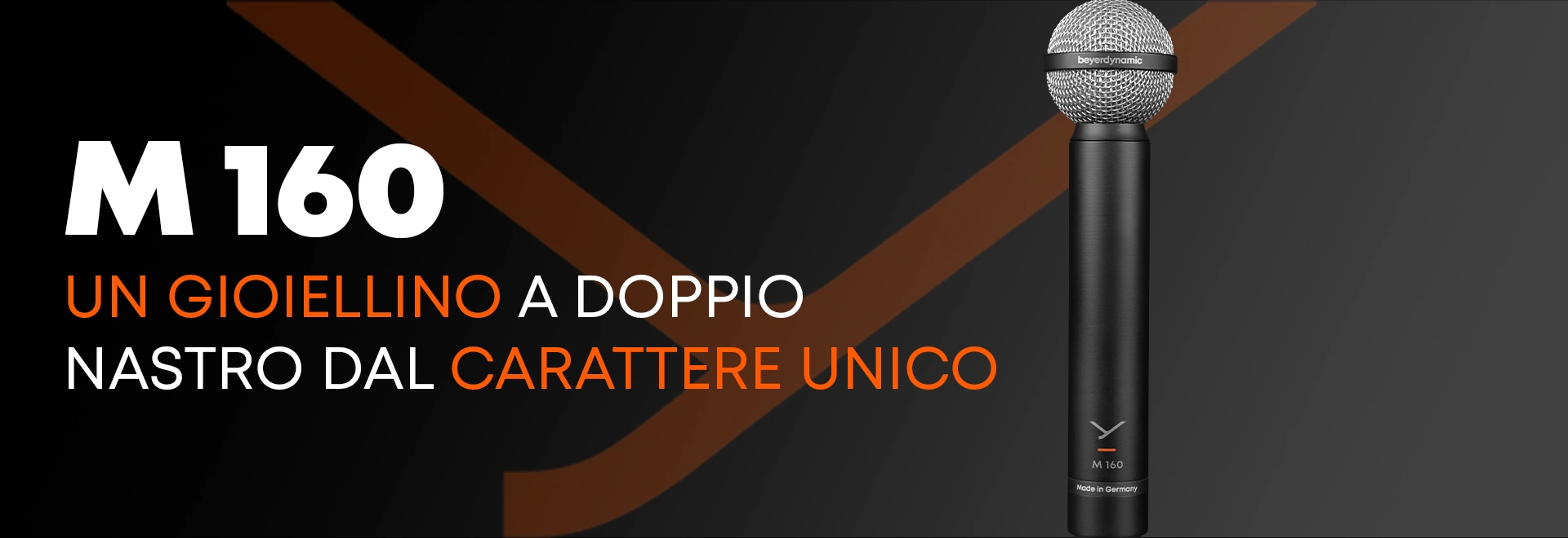Il pluripremiato microfono dinamico a doppio nastro M 160 di beyerdynamic è eccezionale nel suono e nella ripresa: l'intricata lavorazione artigianale incontra caratteristiche tecniche uniche. Chiamato affettuosamente il "gioiellino", M 160 si è arricchito colpo dopo colpo con un carattere sonoro che ha pochissima colorazione tonale. Una risposta dei bassi precisa, medi caldi e acuti setosi ed eleganti si fondono insieme per formare un suono davvero unico. Chi ha familiarità con questo microfono lo saprà: non esiste alternativa all'M 160.