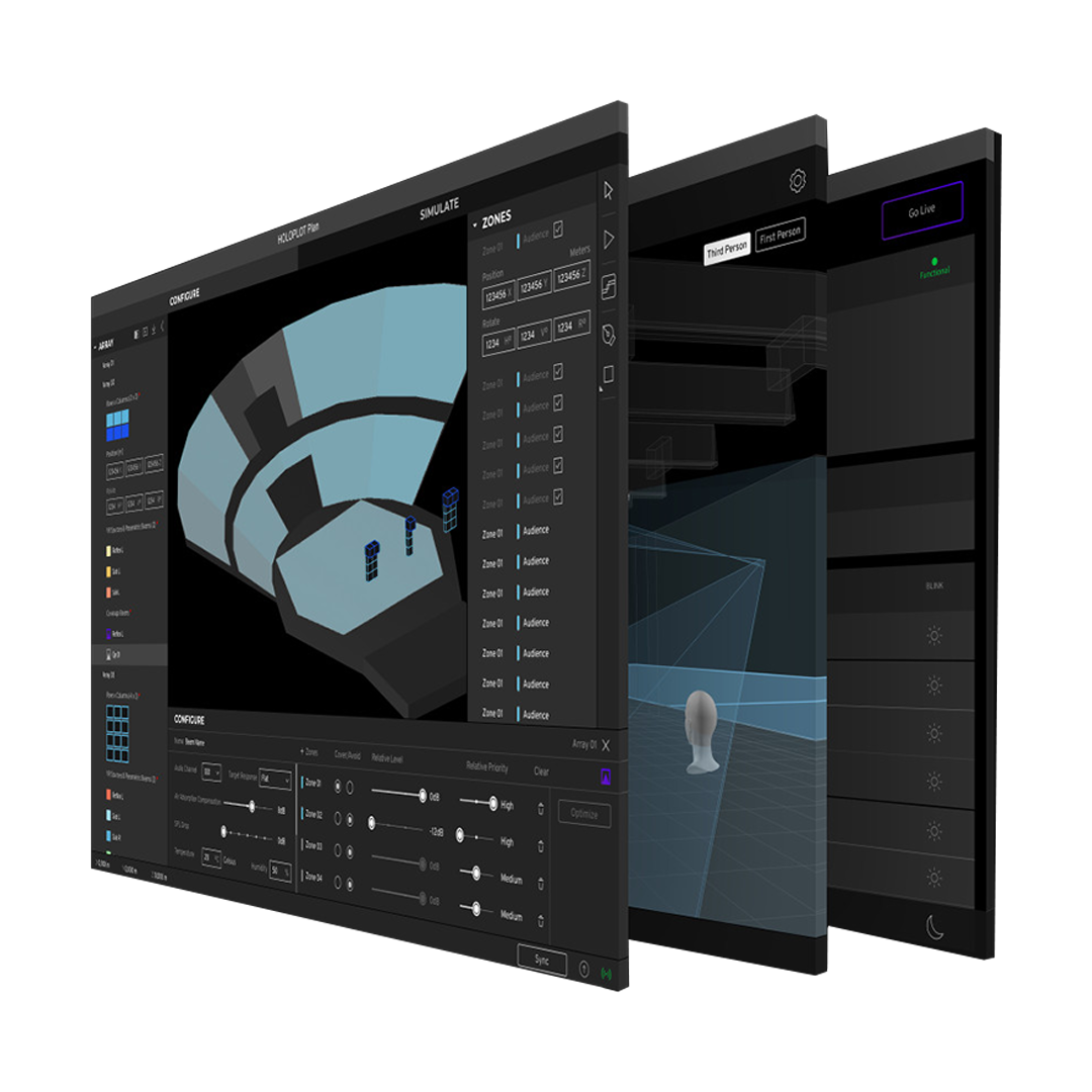 La suite di software HOLOPLOT offre un'esperienza di progettazione e funzionamento fluida che consente di utilizzare facilmente le capacità rivoluzionarie della tecnologia di questi prodotti, elevando qualsiasi esperienza sonora.