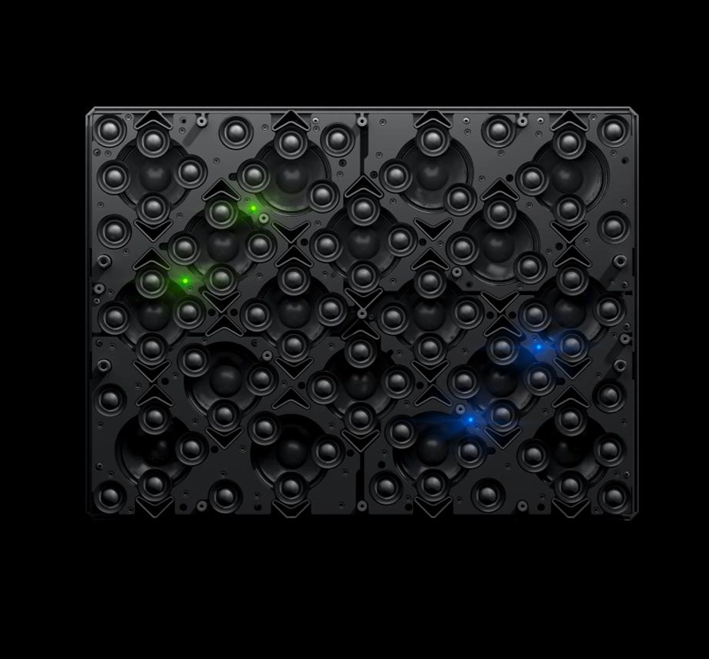 In secondo luogo, un'unità di elaborazione a matrice programmabile (FPGA) ad alte prestazioni calcola gli algoritmi di elaborazione del segnale digitale proprietari di HOLOPLOT per il 3D Audio-Beamforming e la sintesi del campo sonoro.