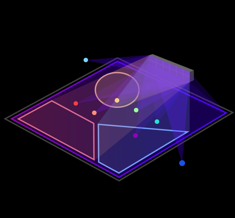 Un'integrazione perfetta grazie alle zone di copertura e ai riflessi che offrono un'esperienza immersiva ininterrotta e a 360°