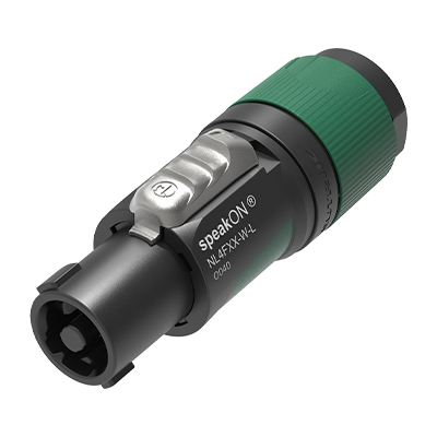 Dotato di una protezione antipiega migliorata grazie alla boccola bicomponente e corrente nominale fino a 37 A rms, i connettori speakON sono lo standard del settore per i collegamenti degli altoparlanti.