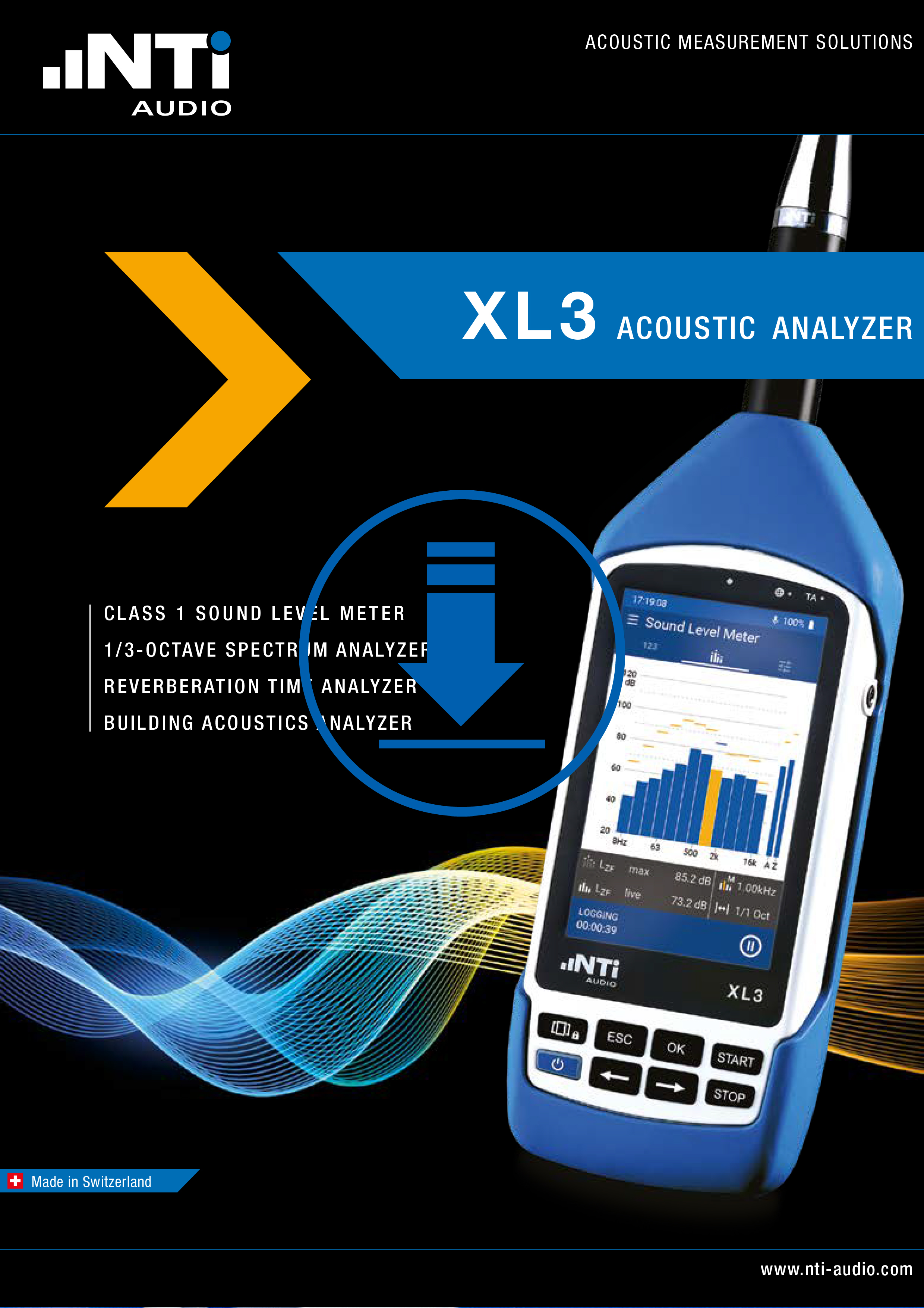 XL3 di NTi Audio è un analizzatore acustico professionale di classe 1 dedicato alle misurazioni del rumore, all'acustica degli ambienti e alle applicazioni di acustica degli edifici.