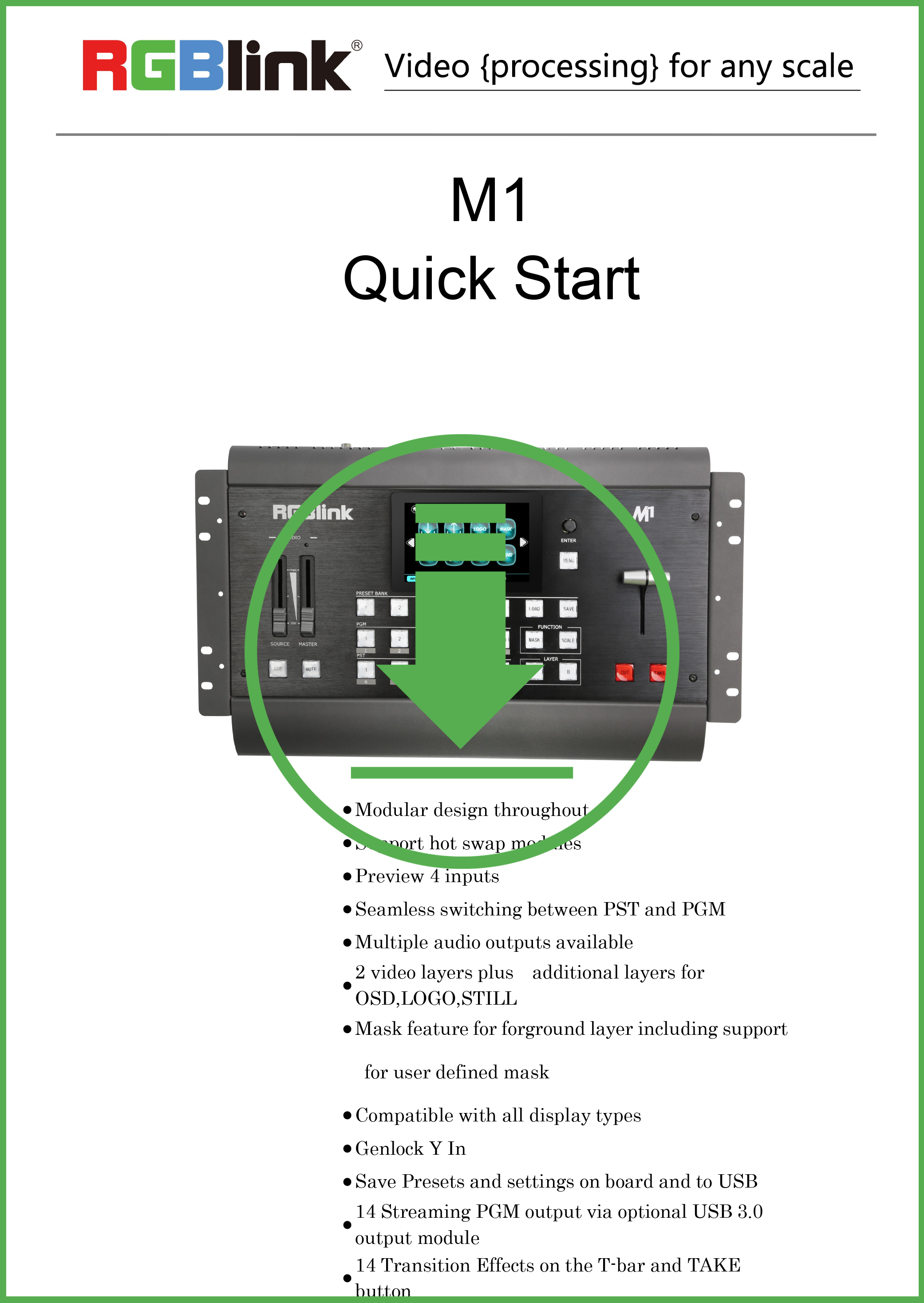 Basandosi sulle tecnologie e sulle innovazioni RGBlink per un processore video All-in-One unico, quasi "portatile", completamente integrato, M1 ridefinisce ciò che può essere un moderno processore video con una serie di funzioni integrate.