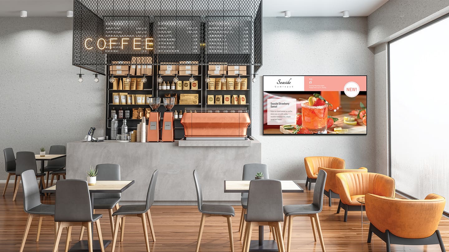 Che tu sia un ristorante indipendente che vuole essere in grado di aggiornare facilmente una scheda del proprio menu digitale, un centro medico che ha bisogno di mostrare video informativi o un grande negozio di vendita al dettaglio che pubblicizza gamme di prodotti specifici, le Samsung Business TV sono in grado di innalzare la qualità della tua attività.