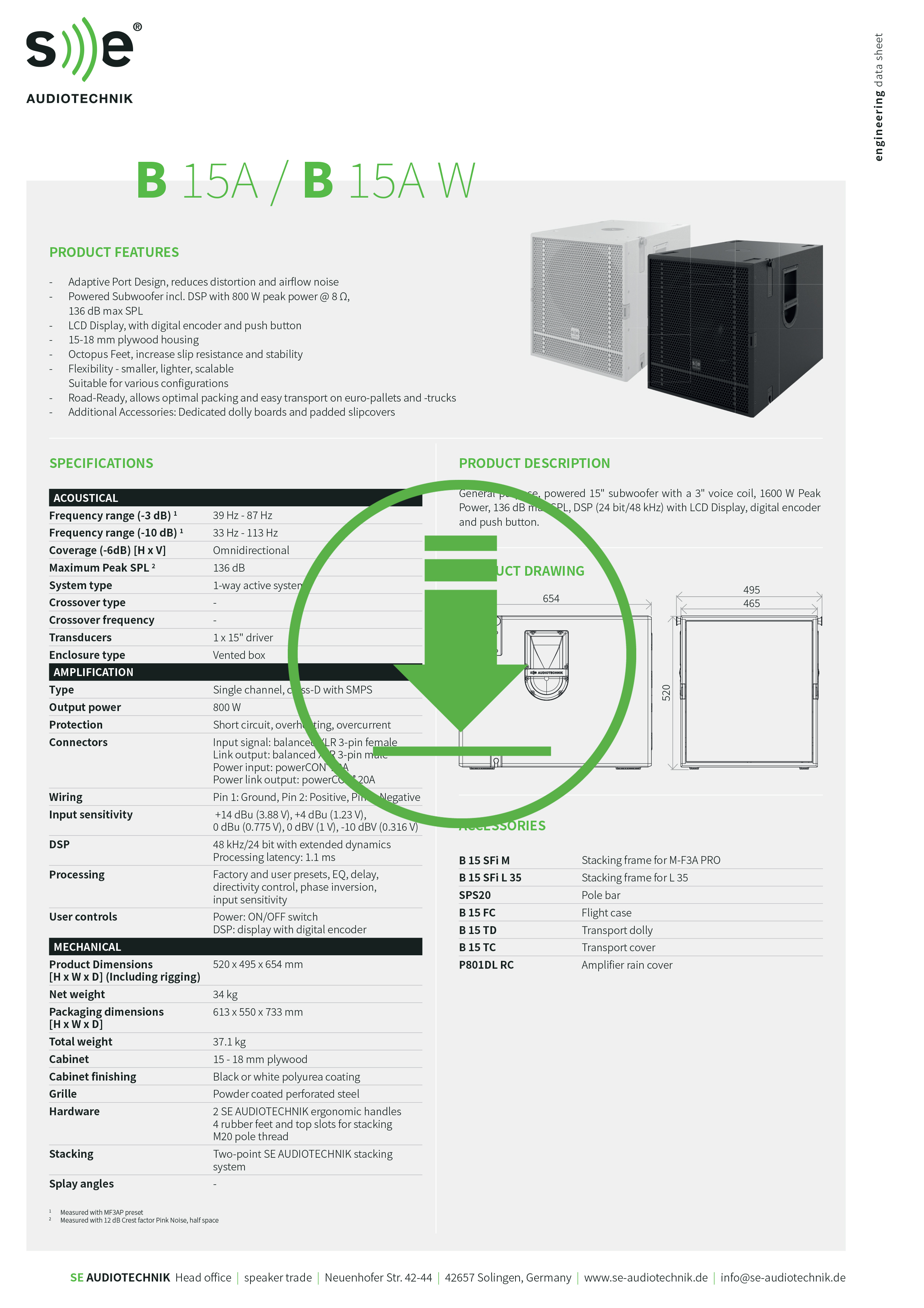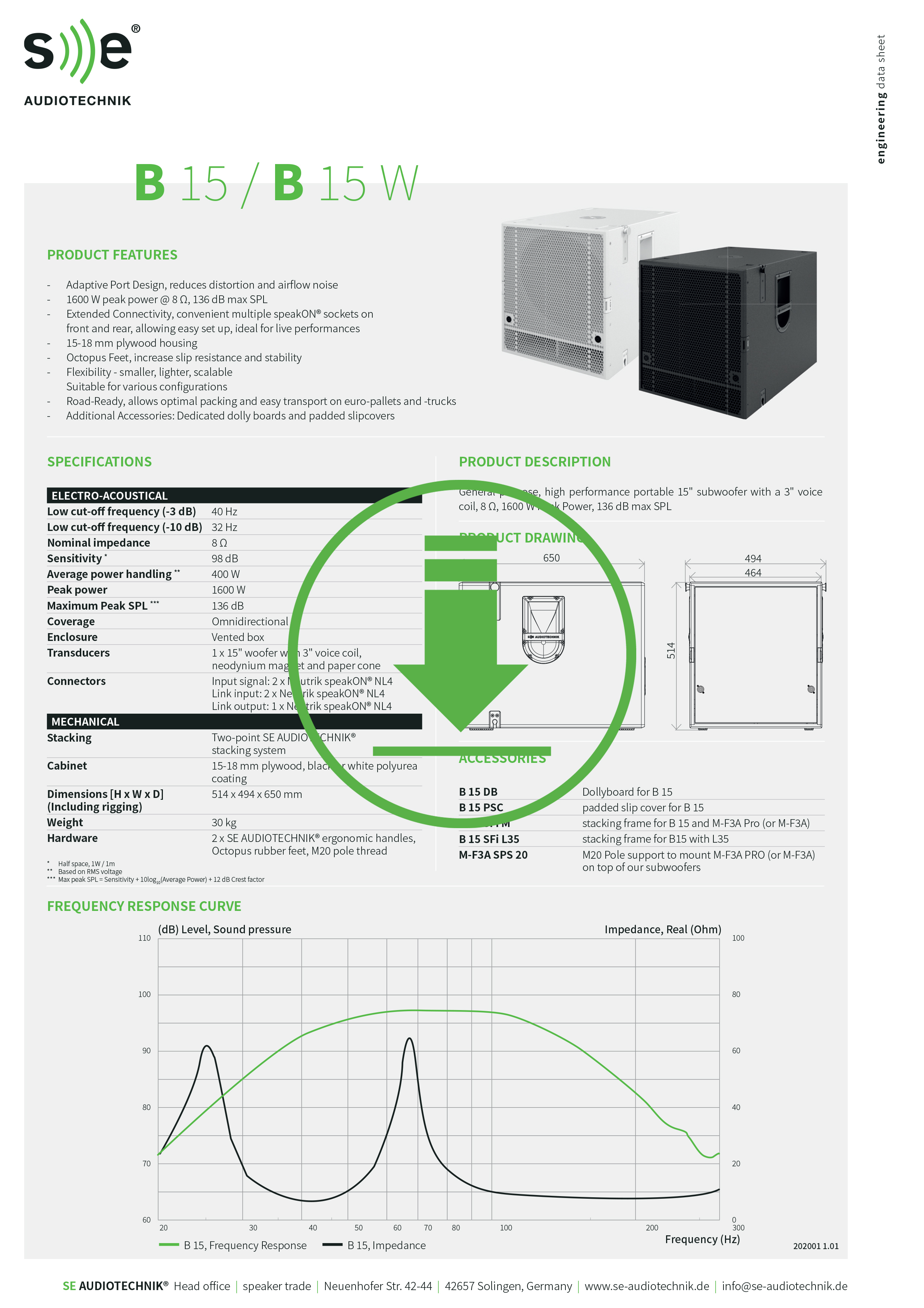 B-15 è un subwoofer multiuso progettato per soddisfare un'ampia varietà di applicazioni e, dotato di un potente altoparlante da 15", è disponibile in versione attiva (B-15A) o passiva (B-15).
