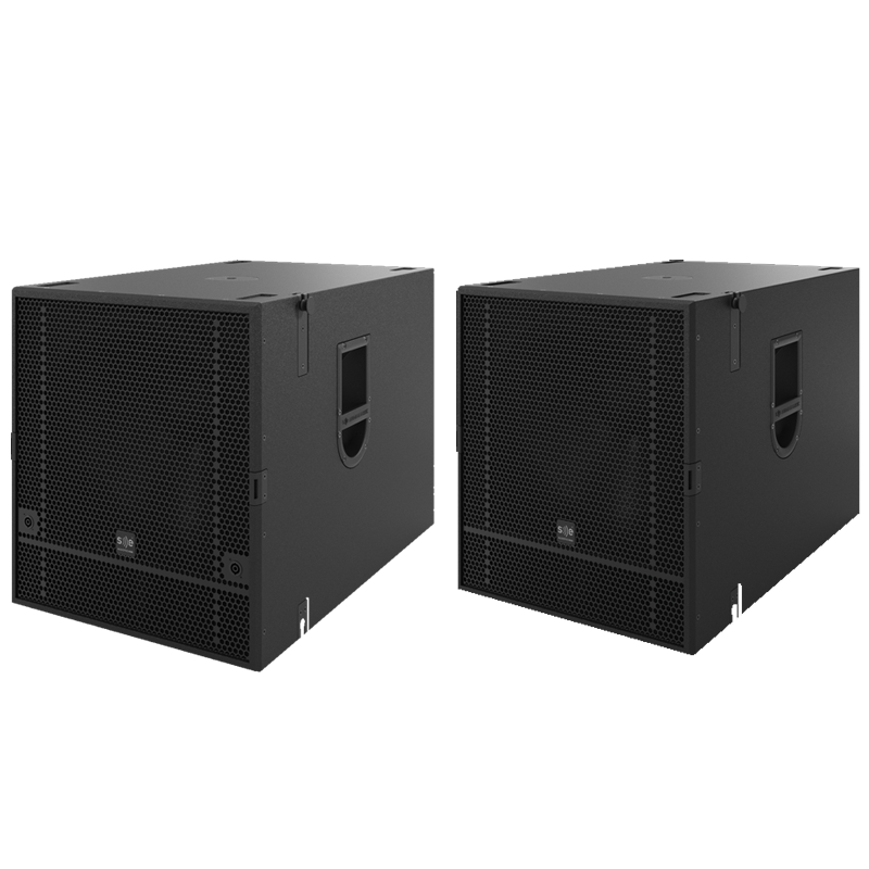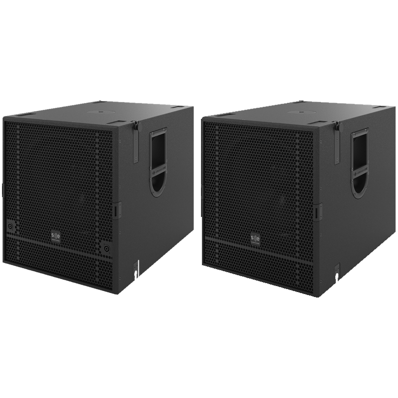 Può essere utilizzato a terra, in piedi, sospeso o montato a parete | Punti che consentono l'installazione in sospensione M8 | espandibile con linee di subwoofer SE | può essere alimentato con installazione SE IA e amplificatori di potenza L-Line | speakON® e connettori Phoenix a 4 pin | passaggio del segnale audio