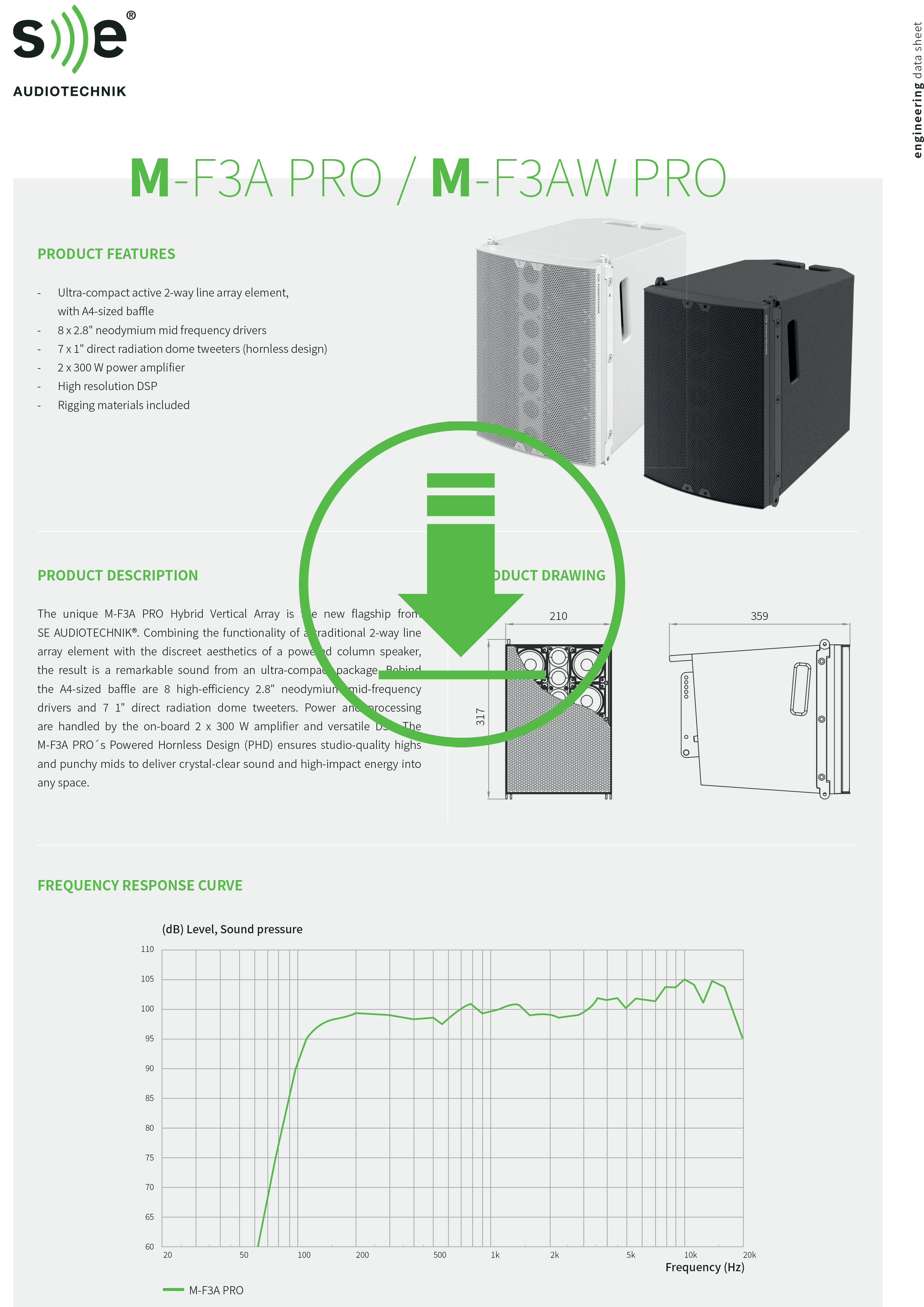 All'interno dell'M-F3A PRO di SE AUDIOTECHNIK ci sono 8 driver midrange al neodimio da 2,8" ad alta efficienza e 7 tweeter a cupola da 1". Ecco perché lM-F3A PRO offre una dispersione straordinariamente diretta ed un suono chiaro, pieno e ricco anche su lunghe distanze.