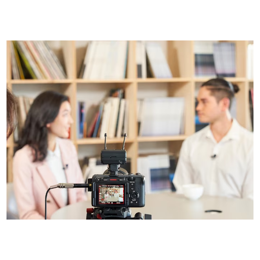 Ideale per le interviste davanti alla telecamera, il mixer audio integrato a 3 canali del ricevitore può assegnare liberamente l'uscita 1 e/o 2 quando si utilizzano due microfoni wireless più un microfono cablato.