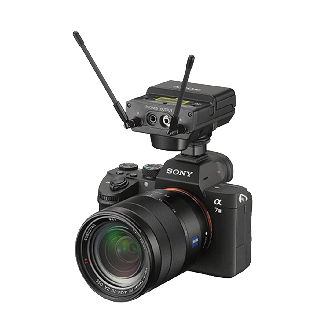 I ricevitori della serie UWP-D si montano direttamente sui camcorder Sony utilizzando la slitta SMAD-P5 MI che trasporta sia l'alimentazione che i segnali audio, con sincronizzazione automatica dell'alimentazione tra telecamera e ricevitore.